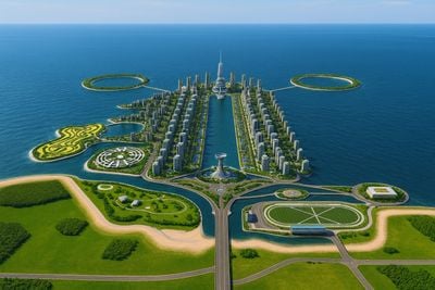 O plano de desenvolvimento incorporou 150 escolas, 50 hospitais, parques, centros comerciais e um campus universitário.