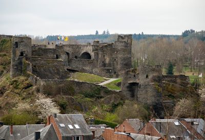 A fortaleza de pedra ergue-se sobre uma crista rochosa entre o rio Ourthe e as encostas da colina Deister.