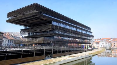 O edifício de seis andares em vidro e aço estende-se ao longo de uma curva do rio Scheldt, contendo mais de 200.000 itens.