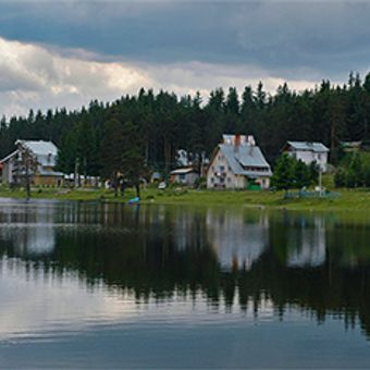 Shiroka Polyana é um reservatório nas Montanhas Ródope Ocidental a cerca de 1540 metros de elevação, cercado por densa floresta de coníferas. O corpo de água tem uma linha costeira irregular com várias seções tipo enseada que parecem pequenos lagos separados.
