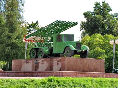O memorial marca o local onde as forças soviéticas usaram pela primeira vez os lançadores de foguetes Katyusha em combate em 14 de julho de 1941.