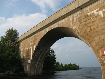 Construída em 1905, esta estrutura permanece como a primeira ponte de concreto armado no Canadá, utilizando o sistema Melan com vigas curvas de aço.
