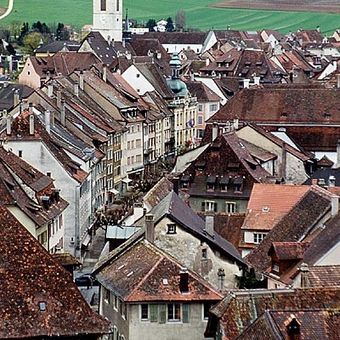 Porrentruy é uma cidade protegida na região do Jura na Suíça, com um núcleo medieval apresentando edifícios de pedra antigos e padrões de ruas compactos. O assentamento situa-se em um terreno ondulado onde florestas e prados definem a paisagem circundante.