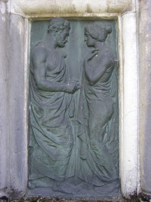 Couple, bronze relief on a burial site on the premises of the Bremgarten cemetery in the city of Bern, Switzerland