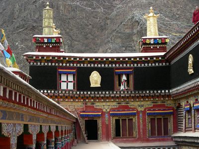 Fundada em 1729 pelo 14o Tusi do clã Derge, esta instalacao de impressao comecou a produzir textos budistas essenciais. Por mais de 270 anos permaneceu como um local central para criar e preservar obras escritas na tradicao tibetana.