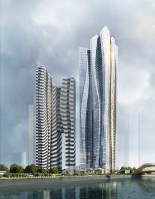 O edifício incorpora uma piscina e clube na cobertura, oferecendo vistas da paisagem urbana de Chengdu e das montanhas Xiling.