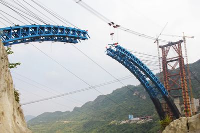 A ponte em arco de aço atravessa o rio Yachi por 436 metros com altura de 272 metros desde o leito do rio até Qingzhen.
