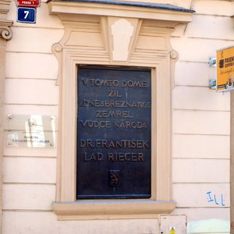 Pamětní deska Josefa Hlávky v průchodu domu Vodičkova 736/17 v Praze