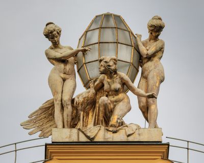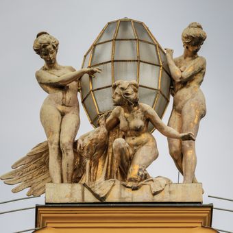 Sousoší na štítu hotelu Evropa na Václavském náměstí, statue in New Town, Czech Republic