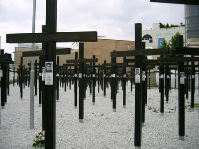 Alexandra Hildebrandt fundou o memorial em 2004 em um lote vazio para honrar vitimas das forcas fronteiriças da Alemanha Oriental. Apos disputas legais com o proprietario do terreno, as cruzes foram removidas em 2005, gerando debates sobre comemoracao privada e publica.