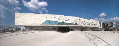 O Phaeno Science Center é um centro de ciências em Wolfsburg apresentando paredes de concreto angulares, amplas superfícies de vidro e seções elevadas sustentadas por colunas de concreto maciças. O edifício cobre aproximadamente 12.000 metros quadrados e abriga numerosas áreas de exposição projetadas para aprendizado interativo e atividades em grupo.