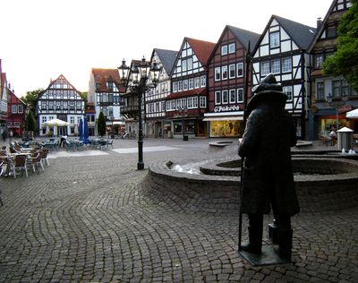 A igreja de São Nicolau ergue-se na praça do mercado com sua torre alta e serve como local onde os visitantes fazem uma pausa breve. As casas em enxaimel margeiam as ruelas estreitas, e as vigas esculpidas mostram estilos diferentes que os habitantes apontam ao explicar a história do seu bairro.