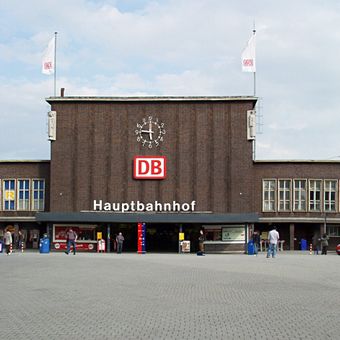 Localizada na Mercatorstraße 17, a estação oferece bilheterias, serviços policiais, instalações públicas e conexões diretas para Frankfurt e Amsterdã através de trens ICE.