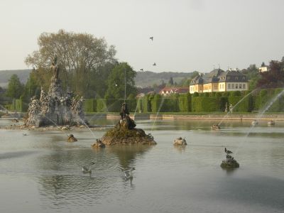 Os jardins apresentam uma pequena estrutura construída inteiramente de conchas marinhas chamada Schneckenhaus, junto com uma escultura de Pegaso construída com cascas de caracol. Esses ornamentos curiosos revelam os gostos brincalhões e excêntricos dos Príncipes-Bispos que outrora apreciavam este retiro.