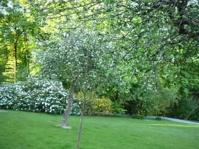 A coleção de rododendros floresce especialmente no início do verão em diferentes áreas do parque. Esses arbustos definem muitos caminhos e criam uma experiência sazonal distinta.