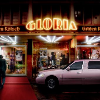 O Gloria-Theater é um local de eventos e cinema no bairro Altstadt-Nord de Colônia que mescla elementos de design teatral e cinematográfico. O espaço apresenta decoração em veludo vermelho e sinalização de néon original dos anos 1950 na entrada, com a sala principal acomodando 400 pessoas sentadas ou 950 em pé, mais um café separado com 80 assentos.