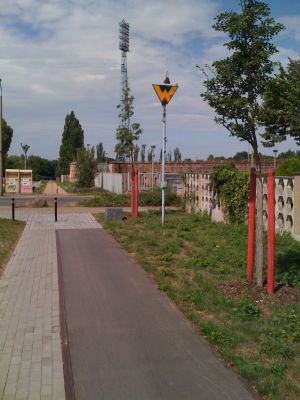 A ferrovia do porto de Halle é uma linha de carga que atravessa Saxônia-Anhalt conectando múltiplas zonas industriais e instalações de transporte. A rota passa pela área portuária e serve diversos negócios e instalações de armazenamento para movimento de mercadorias.