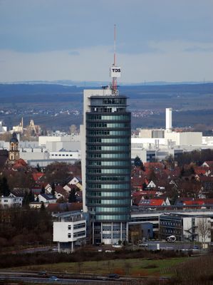 A Torre de Escritórios TDS em Neckarsulm é um edifício moderno com 20 andares que se eleva a 70 metros de altura. A estrutura possui paredes revestidas de vidro e oferece espaço para escritórios e negócios.
