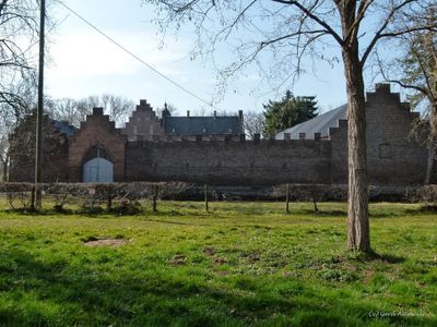 O castelo apresenta uma mistura de diferentes epocas, especialmente visivel em suas paredes de tijolos vermelhos e muros ameados. O conjunto com sua casa senhorial parece um lugar que foi habitado e mantido ao longo das geracoes.