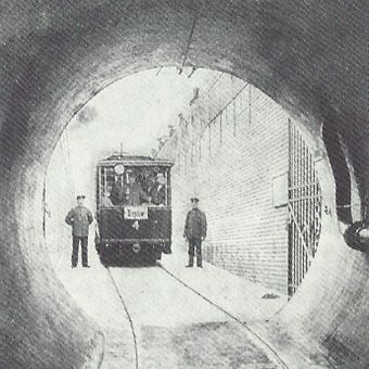 A construção ocorreu entre 1895 e 1899 e marcou o primeiro uso da Alemanha do método de escudo para construção de túneis subaquáticos. A operação cessou em 1932 devido a danos estruturais, e o túnel foi posteriormente convertido em abrigo antiaéreo durante a Segunda Guerra Mundial.