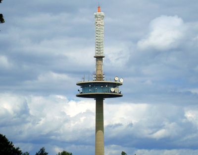 Construída entre 1974 e 1976, substituiu uma torre de aço anterior que não atendia mais aos requisitos de transmissão. Mudanças tecnológicas nos métodos de radiodifusão levaram a modificações posteriores da antena.