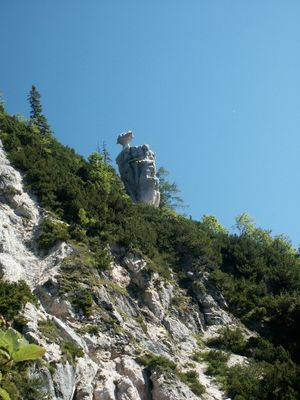 Steinerne Agnes e uma coluna de rocha dolomitica que se eleva da cadeia montanhosa Lattengebirge em torno de 1300 metros de altitude. A pedra aqui forma uma silhueta de cogumelo por causa de camadas de dureza diferente que sofrem erosao em velocidades desiguais.