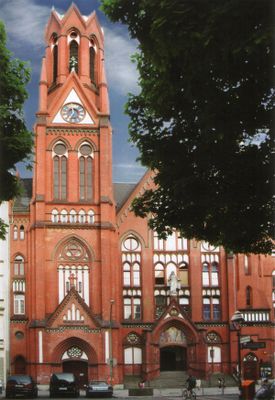 O arquiteto Ernst Schwartzkopff projetou este edificio, que foi inaugurado em 20 de dezembro de 1905. A torre original atingia 71 metros de altura e se tornou um elemento caracteristico do horizonte do bairro.
