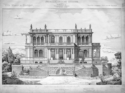 A residencia foi construida em 1875 pelo arquiteto Johann Wendelin Braunwald para o fabricante de chocolate Eduard Otto Moser como uma luxuosa casa familiar. Um bombardeio aereo em 1944 destruiu a maior parte do edificio, mas deixou os alicerces intactos.