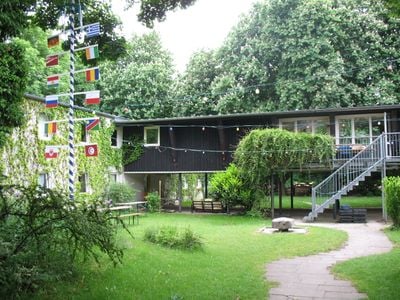 Estudantes de diferentes origens formam uma comunidade residencial no Wohnheimsiedlung Maßmannplatz, participando de atividades sociais e criando conexões multiculturais.