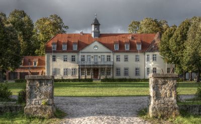 O Schloss Grochwitz é uma mansão barroca situada em um parque amplo, com um edifício residencial principal e espaços projetados para eventos. A propriedade combina áreas funcionais que preservam o caráter histórico com usos contemporâneos.