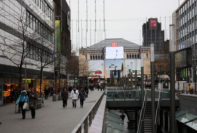 A Bahnhofstraße vai da Praça Kröpcke até a estação central de trens e contém numerosas lojas, lojas de departamentos e marcas internacionais de moda ao longo de seu trajeto. A rua funciona como uma ampla zona de pedestres onde as pessoas se movem facilmente de uma loja para outra.