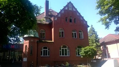 O edifício, uma vila de tijolos projetada pelos arquitetos August Martenstein e Philipp Josseaux, foi construído em 1899 e transformado em instituição educacional em 2007.