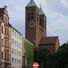 A Gustav-Adolf-Gedächtniskirche apresenta elementos arquitetônicos característicos do design eclesiástico alemão, com linhas verticais pronunciadas e padrões geométricos em toda estrutura.