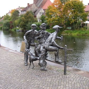 O Schleusenspucker Rathenow é uma escultura de bronze composta por três figuras humanas e um cão posicionados perto do canal. Uma das figuras é equipada com um mecanismo de água que periodicamente joga água para fora.