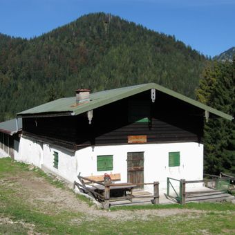 Alm, sog. Baumayralm, Steinbau mit Flachsatteldach und hohem hölzernen Kniestock, 1817