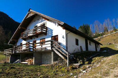 Alm, sog. Aggeralm, satteldachbau auf hohem Natursteinsockel mit Hochlaube und Firstzier, Firstpfette bezeichnet mit 1890