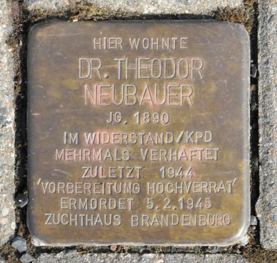 Stolperstein em memória de Theodor Neubauer, stumbling stone in Bad Tabarz, Germany