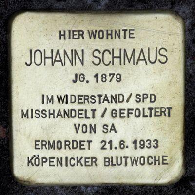 Stolperstein em memória de Johann Schmaus, Stolperstein in Berlin-Köpenick