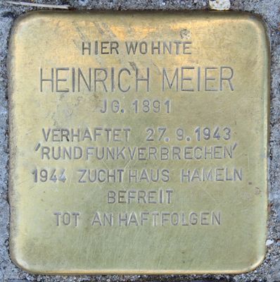 Stolperstein em memória de Heinrich Meier, Stolperstein in Hamburg-Wilstorf