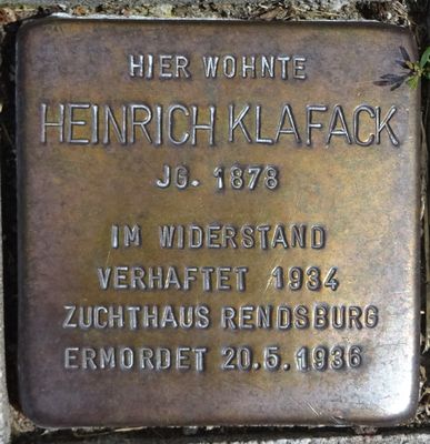 Stolperstein em memória de Heinrich Klafack, Stolperstein in Hamburg-Neugraben-Fischbek