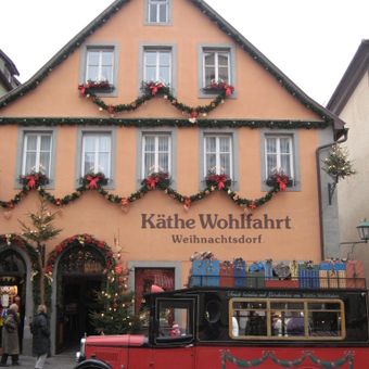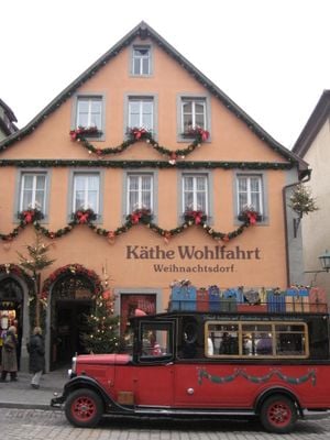 Wilhelm e Käthe Wohlfahrt fundaram seu negócio de decorações natalinas em 1964 perto de Stuttgart antes de se mudarem para Rothenburg ob der Tauber em 1977.