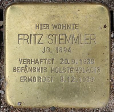 Stolperstein em memória de Fritz Stemmler, Stolperstein in Hamburg-Altona-Nord