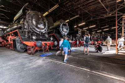 Os visitantes podem entrar na cabine do operador da locomotiva 44 1338 e experimentar o console de controle a partir da perspectiva de um maquinista de trem. Este ponto de vista oferece uma sensação rara de como era operar uma máquina tão massiva.