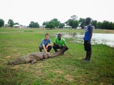 Lagoa dos crocodilos de Paga, Santuário de crocodilos sagrados em Kassena-Nankana West District, Gana.