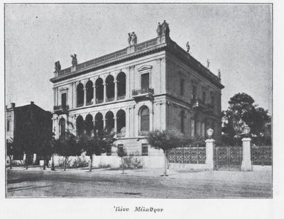 A coleção particular de artefatos antigos descobertos por Heinrich Schliemann durante suas escavações decorava os ambientes internos desta estrutura neorrenascentista.