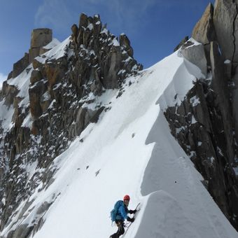 Os escaladores partem de Chamonix, utilizando o Refúgio du Requin e o Refúgio des Cosmiques como acampamentos base para tentativas de cume.
