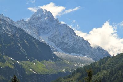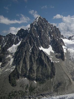 O Aiguille du Chardonnet atinge 3824 metros de altitude e apresenta uma forma piramidal simétrica quando visto do Vale de Chamonix.