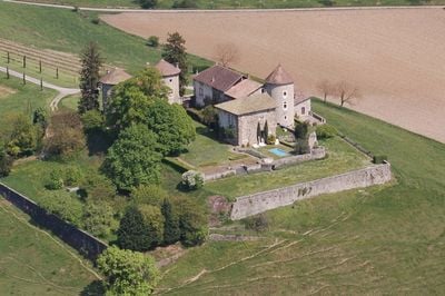 O castelo oferece vistas de quatro cadeias montanhosas: Jura, Vercors, Belledonne e Chartreuse da sua posição elevada.