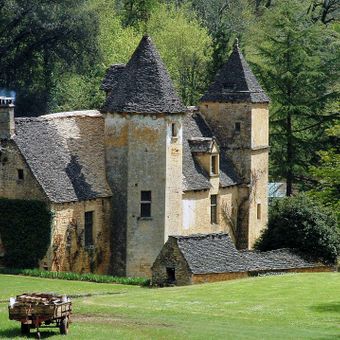 Château de Cipières é um castelo localizado em Saint-Crépin-et-Carlucet com uma estrutura retangular, uma torre de escada poligonal e uma torre quadrada, todos cobertos por um teto de pedra pesada. O edifício exibe a construção sólida típica das habitações fortificadas francesas com designs de torres funcionais.