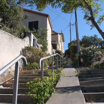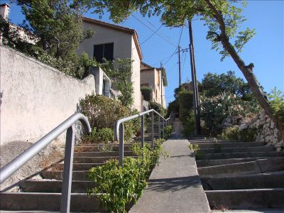 O distrito Roucas-Blanc estende-se de Endoume até a Corniche, com caminhos e escadarias que levam a pontos de observação do Mar Mediterrâneo.